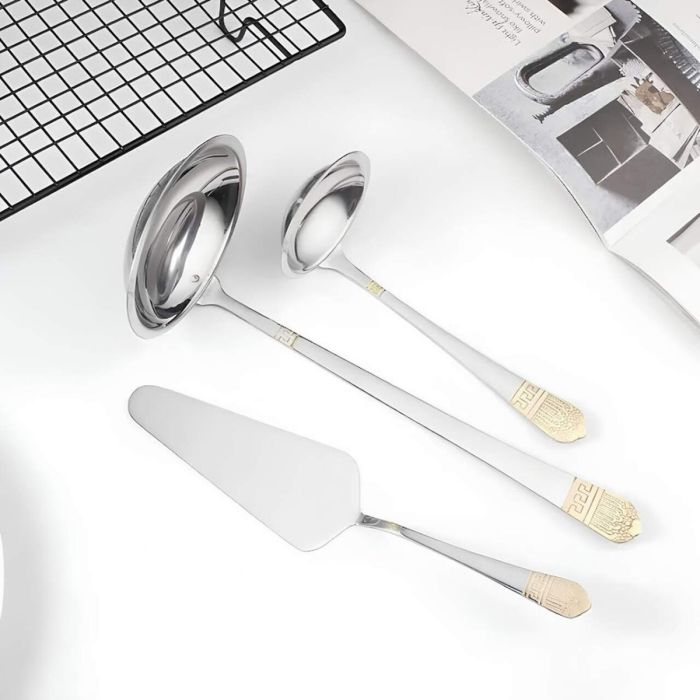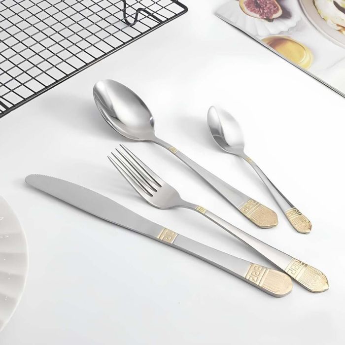 Upgrade your dining experience with this luxurious 84-piece stainless steel flatware set. Designed with a sleek minimalist style, it features a mirror-polish silver finish, offering both elegance and durability. Crafted from high-quality stainless steel 410, this eco-friendly and sustainable cutlery set is perfect for home use, restaurants, and fine dining.