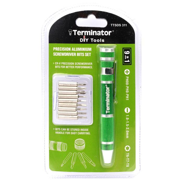 - 9-in-1 Precision Screwdriver Bits Set with Pen-Like Handle by Terminator