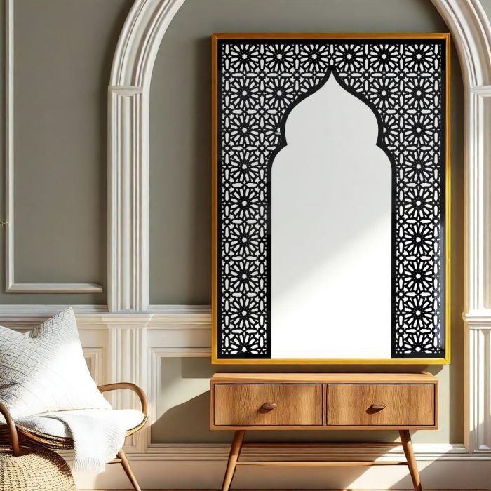 This Acrylic wall mirror sticker with a decorative arch design made of reflective acrylic, adds an elegant aesthetic touch and enhances the wall with visual depth
