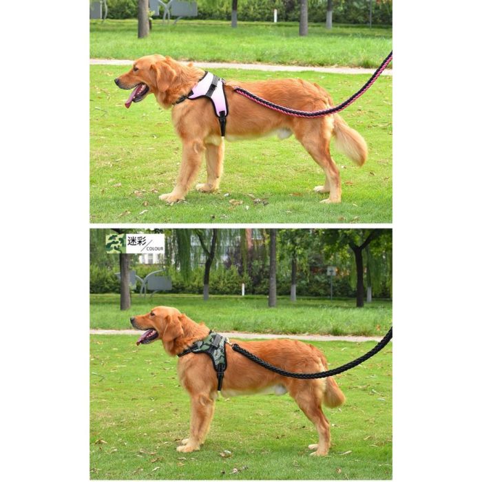 This Adjustable dog chest harness designed for full comfort during walks. Equipped with a durable leash for better control of your dog during walks. this harness provides both comfort and practicality for everyday use.