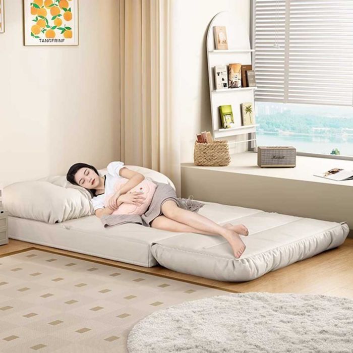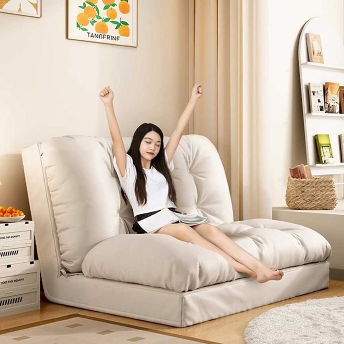 This Adjustable Floor Relaxation Lounge Chair is made of a comfortable material that offers soft support, featuring easy position adjustment for reading or reclining, suitable for bedrooms, balconies, and window areas, adding a warm touch to your daily comfort