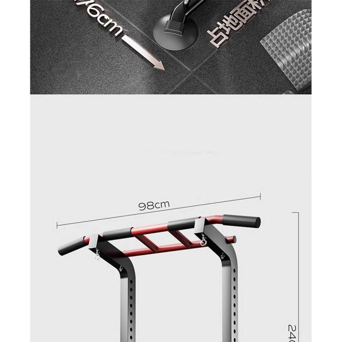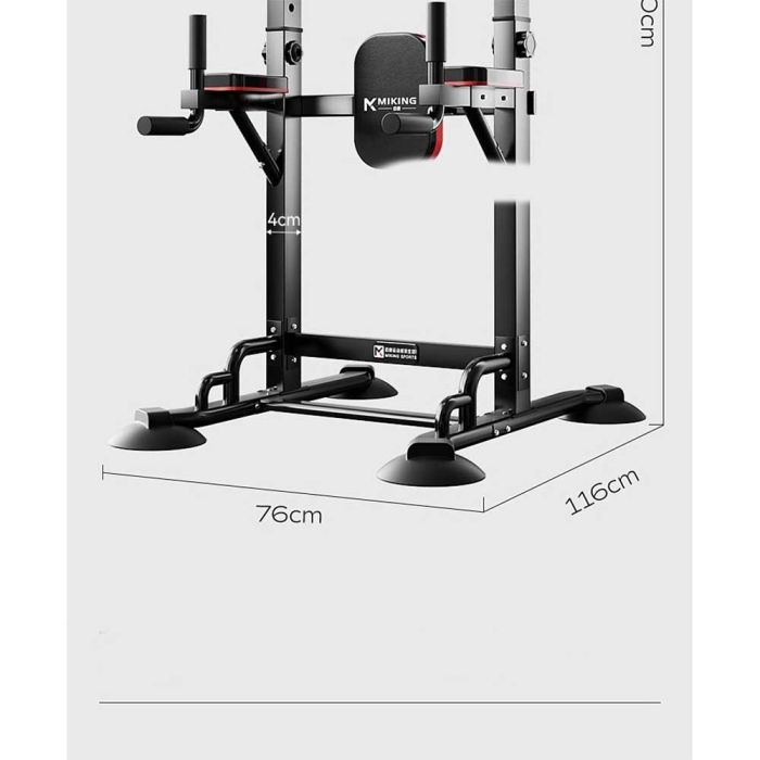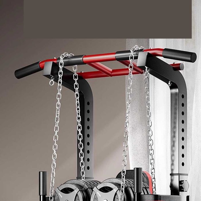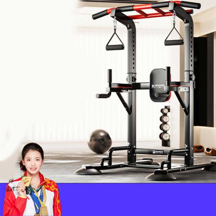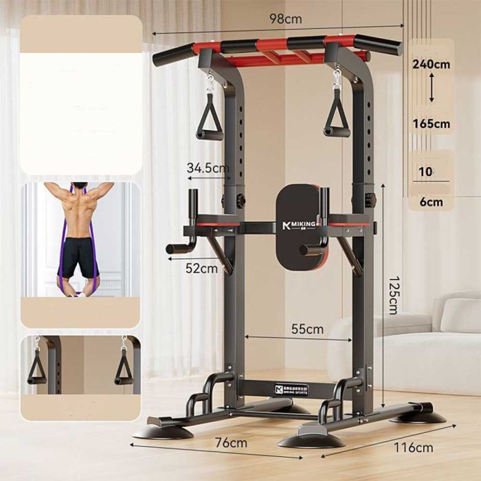 This adjustable full-body workout station delivers reinforced carbon-steel stability with a 1.3 mm frame thickness and precise height customization for various training styles. It supports pull-ups, dips, core, and arm exercises with a stable anti-slip base, complemented by an assistance belt and rings to expand training versatility and enhance workout performance safely.