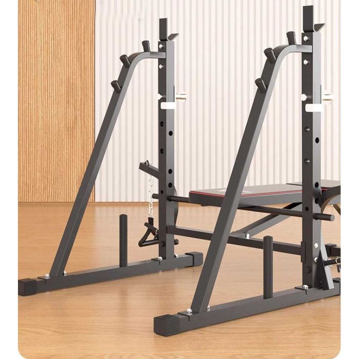 - Side supports for safe barbell placement