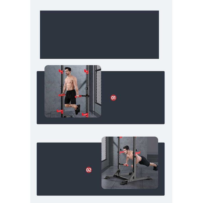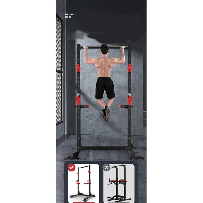 This adjustable home pull-up and training rack features a solid steel structure that provides excellent stability for pull-ups, squats, and lifting exercises. It supports up to 500 kg and offers flexible height adjustment up to 226 cm, delivering wide movement freedom and a professional training experience for all fitness levels