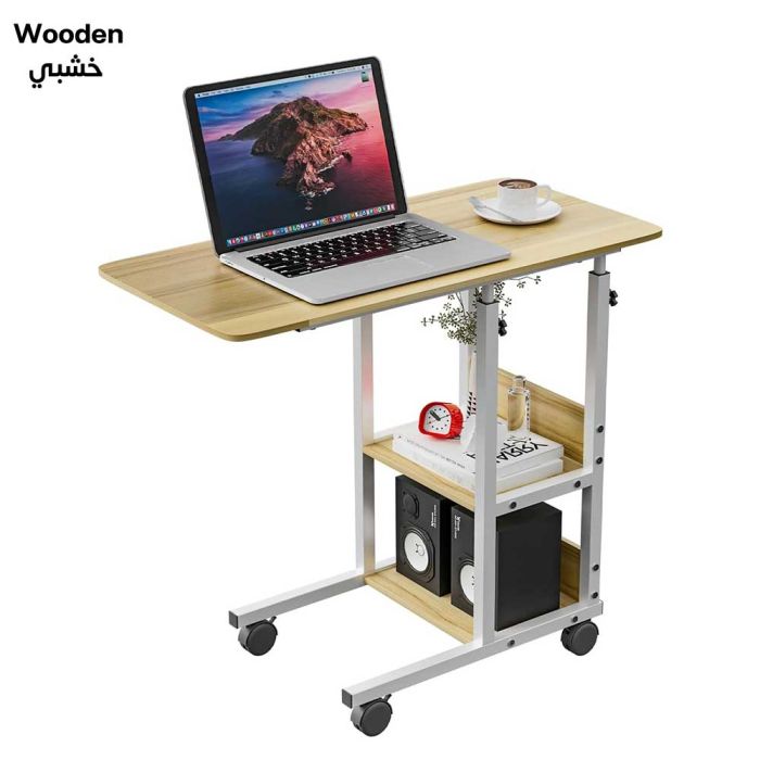 This adjustable side table is designed with an ample and spacious work area for holding various items. Made from high-quality, durable, and easy-to-clean materials, ensuring a long-lasting, hygienic surface suitable for daily use. The table also features two lower storage shelves allowing you to organize your books and belongings, in addition to smooth-rolling wheels that make it easy to effortlessly move the table around the room