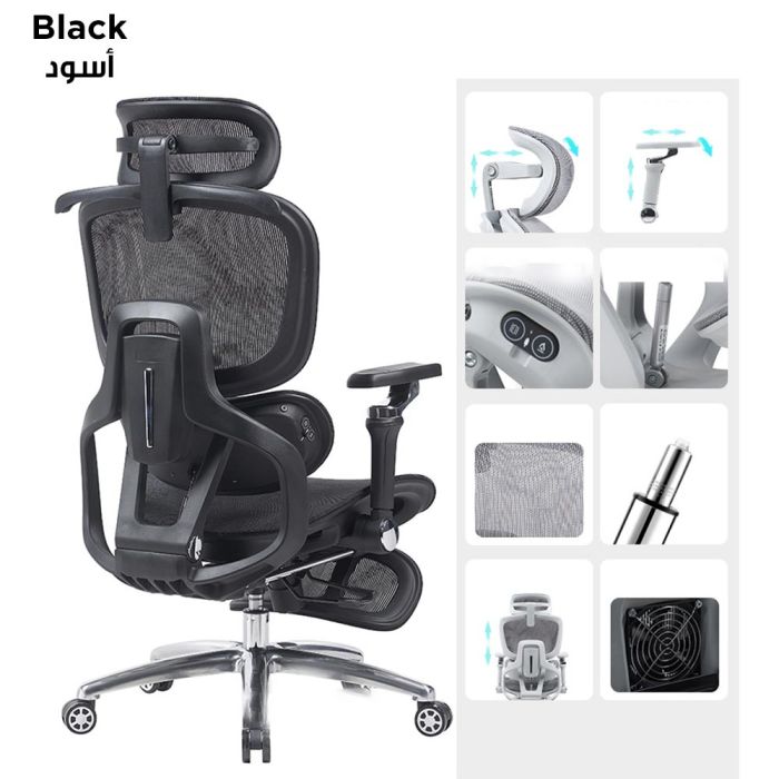 This Adjustable Office Chair With Footrest 123 to 136 cm is made from breathable mesh with a supportive structure, offering heating massage and ventilation comfort, a flexible design supporting back and neck, suitable for long sitting, providing balanced comfort while maintaining its quality