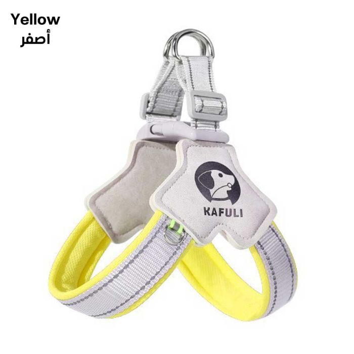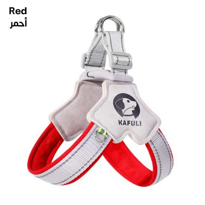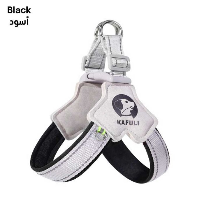 This Adjustable reflective dog walking harness, designed to ensure comfort and safety during walks. with reflective straps for enhanced visibility in the dark. The harness evenly distributes pressure and allows your dog freedom.