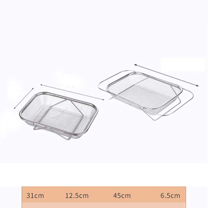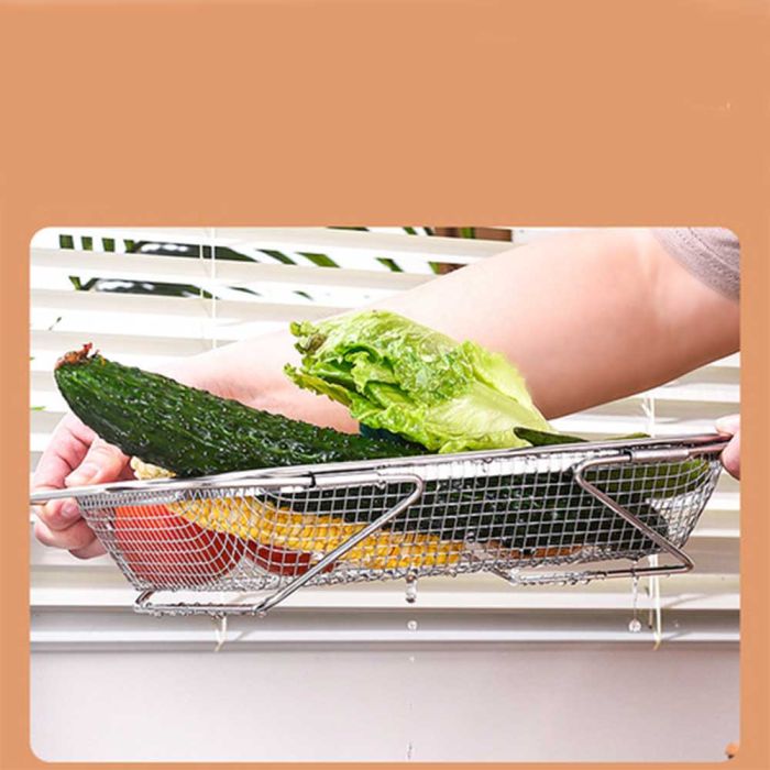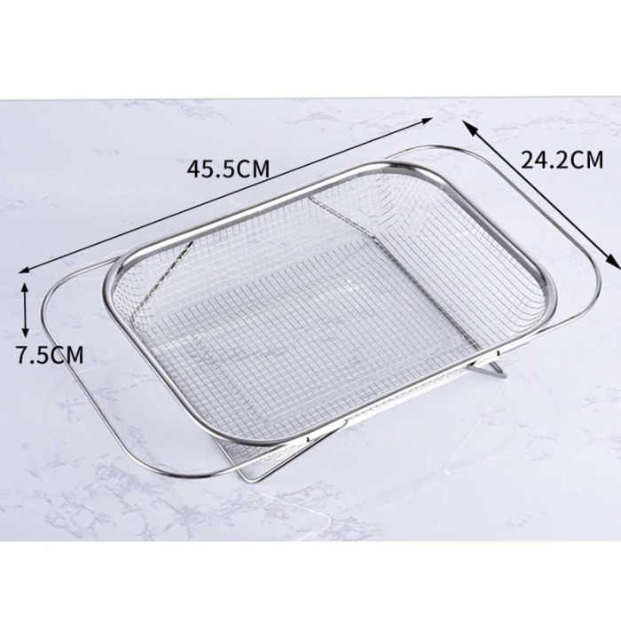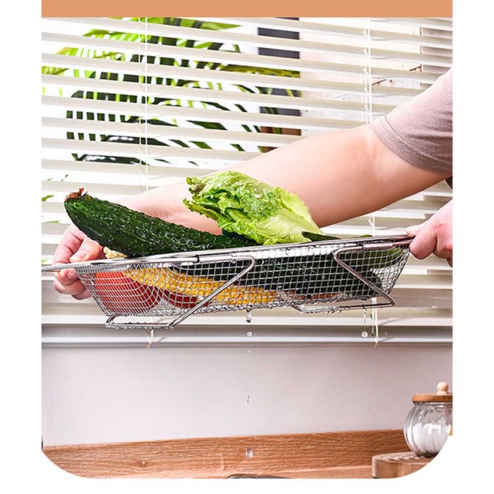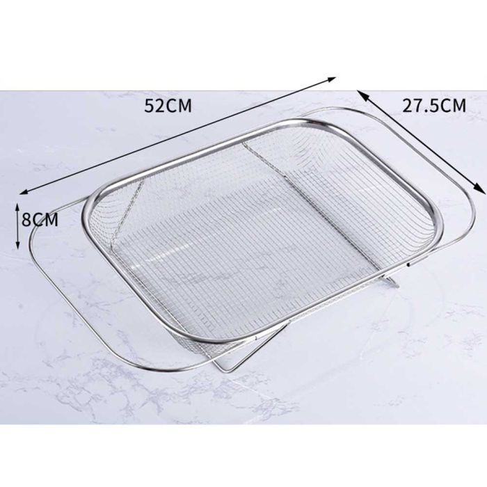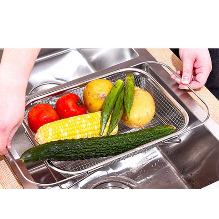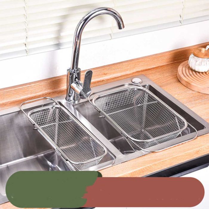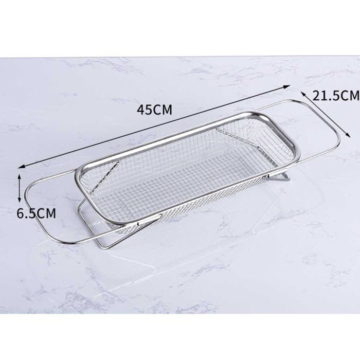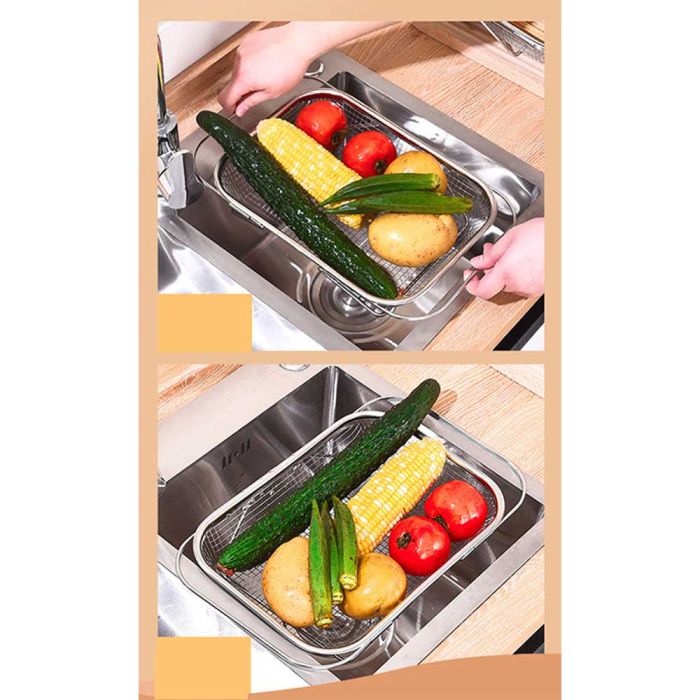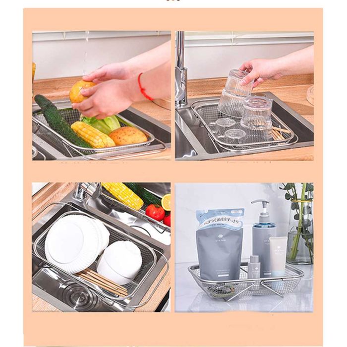 This extendable stainless steel sink draining basket is designed for washing fruits and vegetables and drying utensils, perforated surface for quick drainage, rust-resistant and easy to clean, flexible adjustment to fit different sink sizes, making it a reliable tool for daily kitchen routines.
