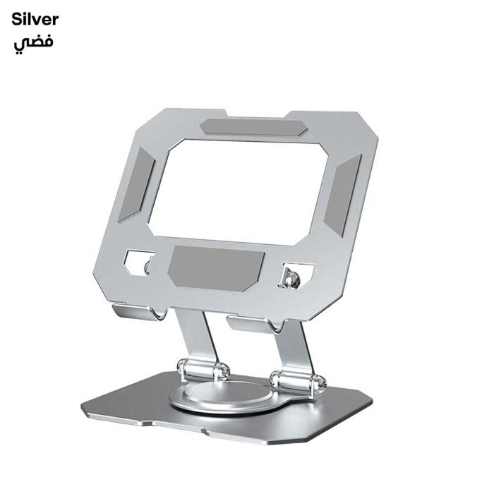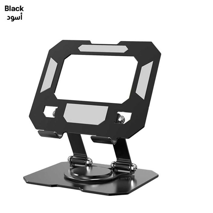 A durable and adjustable tablet stand designed to provide stable support and flexible viewing angles for tablets, smartphones, and e-readers. It features a 360° rotating base that allows smooth switching between horizontal and vertical orientations, making it ideal for watching videos, reading, video calls, and work tasks. The stand is built with a sturdy metal construction that ensures strong load-bearing capacity and long-term durability, while the foldable and adjustable design allows users to customize height and angle for ergonomic comfort.