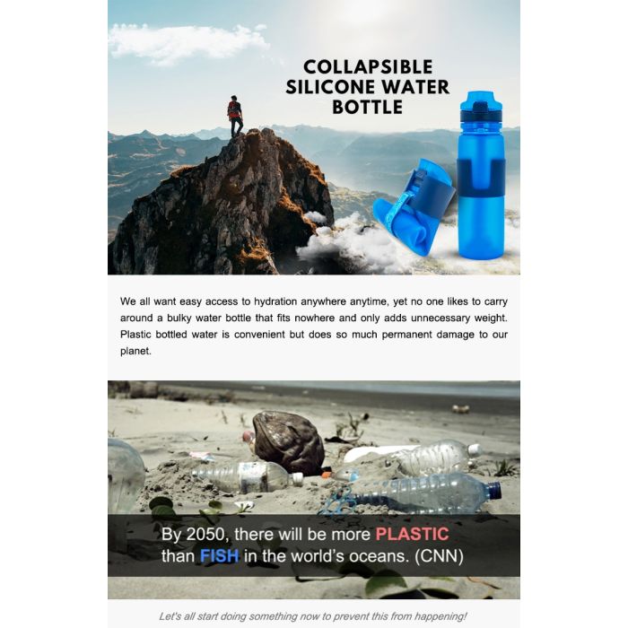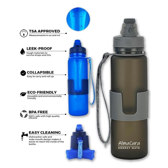 This collapsible silicone water bottle is the perfect solution for on-the-go hydration. The innovative design allows the bottles to collapse to a compact size, making them easy to pack and carry wherever you go. it features a leak-proof design and a screw-on cap that will keep the liquids inside the bottle no matter your activity or movement.