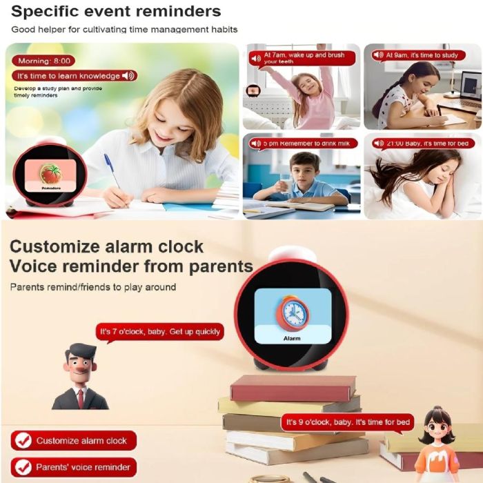 Give your child an educational and entertaining tool that helps them organize their time easily and fun! This smartwatch, equipped with artificial intelligence, doesn't just wake your child up; it's a smart companion that answers their questions and helps them build healthy daily habits with personalized parental voice reminders. It also provides an ideal sleeping environment with soothing nature sounds, to relax you and your child
