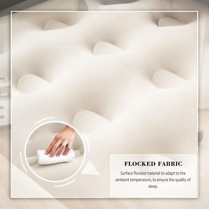 Discover ultimate comfort with this double air mattress that easily transforms into a comfortable sofa thanks to its removable backrest and headrest, making it ideal for living rooms or camping. Made from durable PVC and water-resistant velvet, it supports up to 200 kg. It's easy to inflate and set up in just three minutes, and comes with cup holders and pillows for a complete relaxation experience.