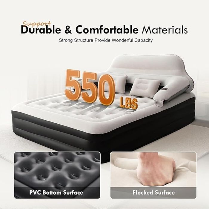 - Air Mattress with Headrest and Cup Holders 203 x 152 x 71 cm