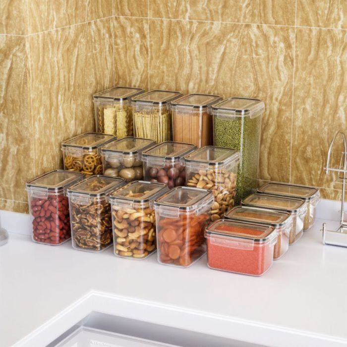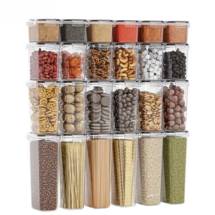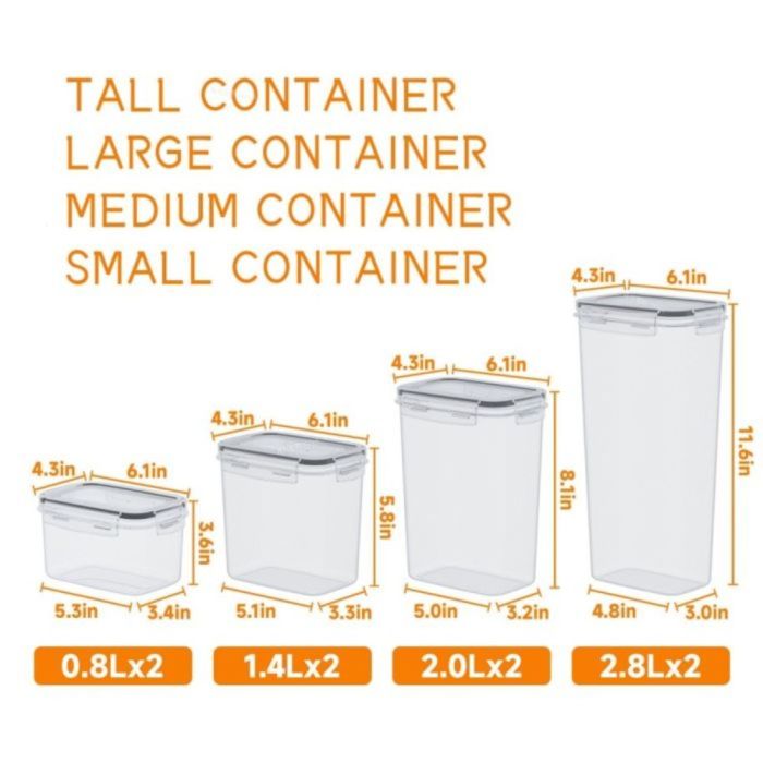 Organize your kitchen with this clear storage container set made from high-quality PP plastic, featuring airtight lids to keep food fresh, a transparent design for easy viewing, and multiple sizes ideal for rice, pasta, grains, and nuts.