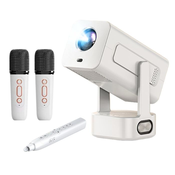 A dynamic smart solution designed to bring projection, interactivity and entertainment together in one device. Featuring native 1080p resolution and 280 ANSI lumens brightness, it supports screen sizes from 40 to 150 inches (best at 40-120). The built-in Android 13 system gives you direct access to Google Play for apps like YouTube, Netflix, Canva and Teams. Dual-band WiFi and Bluetooth 5.0 enable seamless streaming and device connection. With features like whiteboard mode, dual wireless microphones, built-in speaker, auto-focus and auto-keystone correction, it is ideal for teaching, presentations, family cinema nights and creative activities.