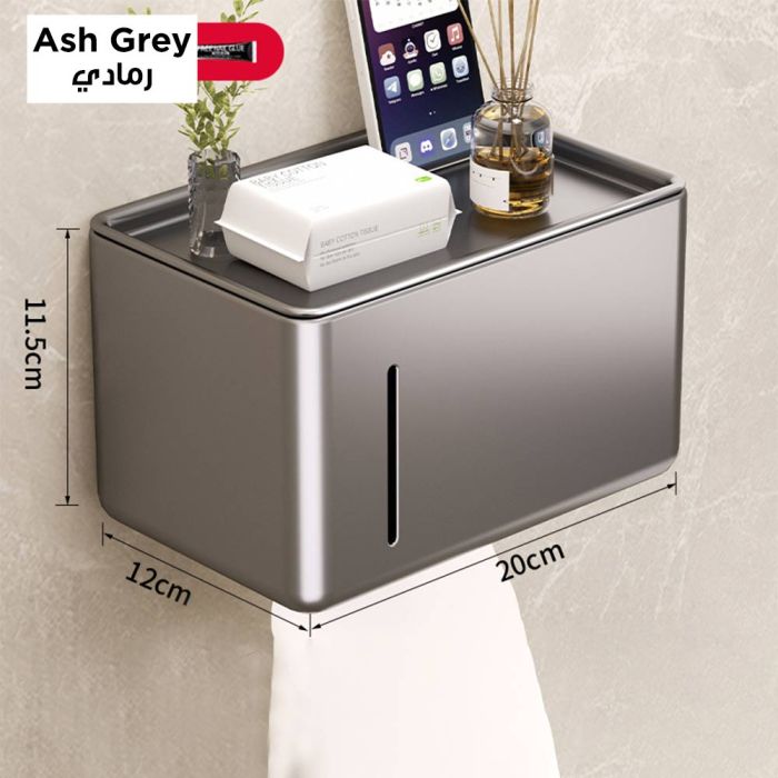 This aluminum tissue box with integrated top shelf for bathroom provides a compact and elegant solution for storing tissues. The built in shelf adds practical space for essentials, while the sturdy aluminum construction ensures durability. With its sleek finish, it enhances both functionality and style in any modern bathroom.