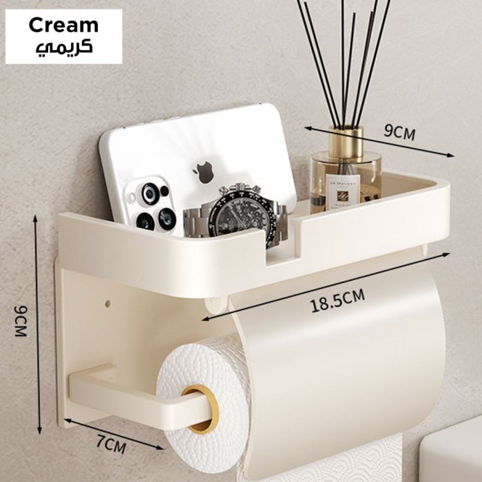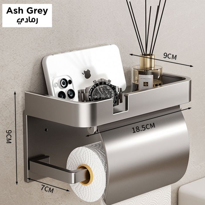 This aluminum tissue stand with protective cover and top shelf for bathroom offers both protection and practicality. The cover keeps tissues safe from moisture and dust, while the top shelf allows storage for essentials such as phones or air fresheners. Designed to maintain its quality, it adds sophistication and order to any bathroom.