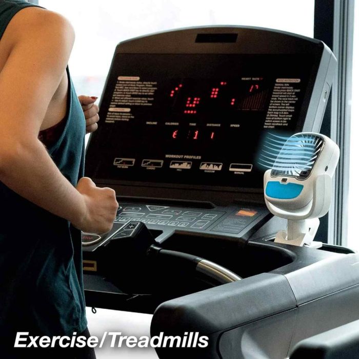 - 360-degree pivoting head and adjustable vents for directional airflow.