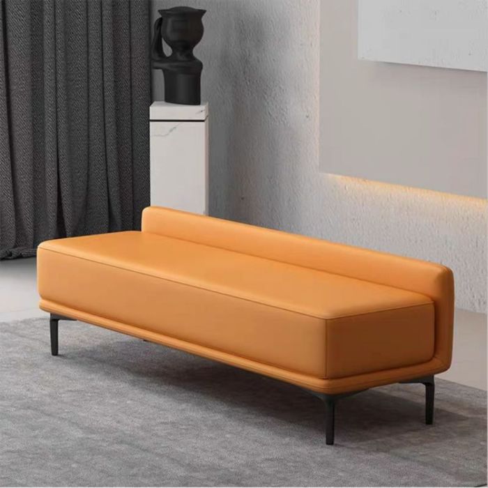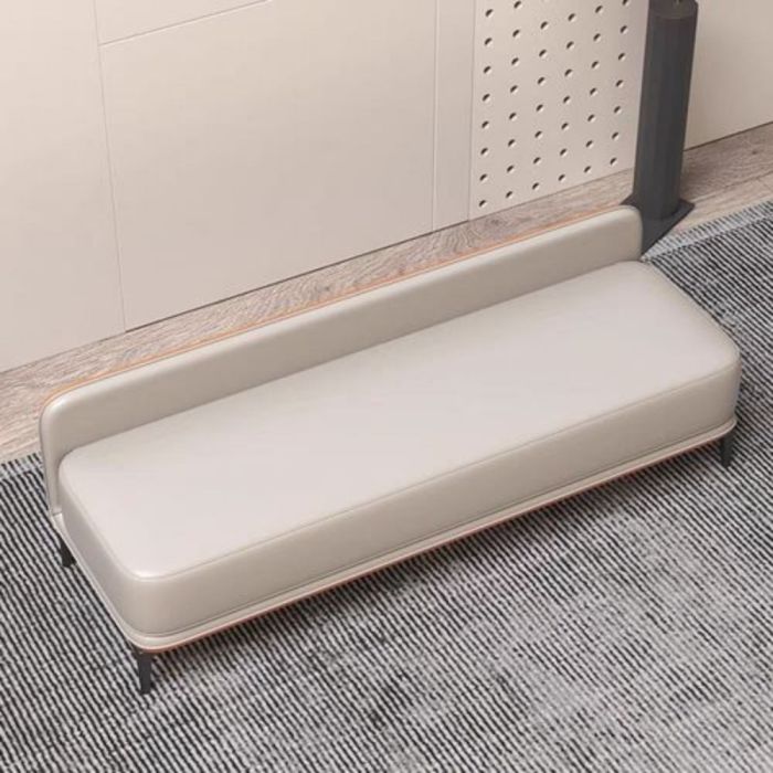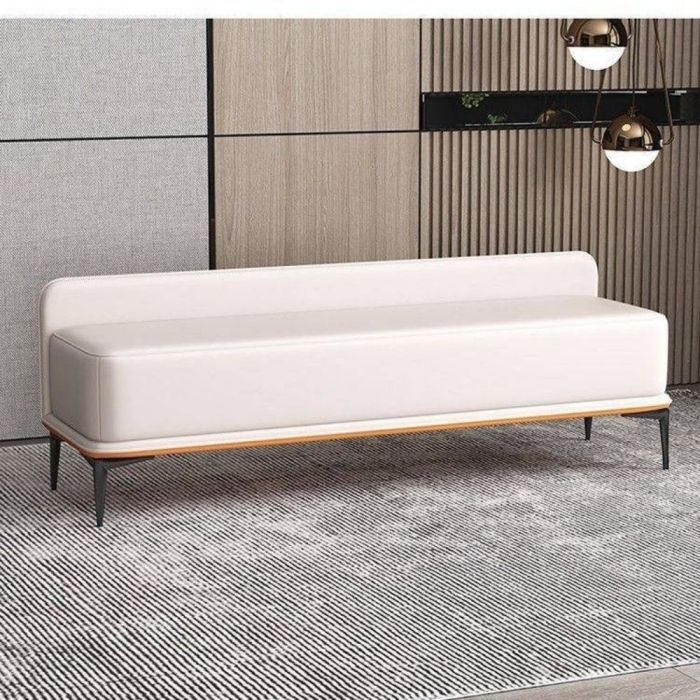 This Artificial leather seating bench with backrest made from elegant materials, offering comfortable seating and balanced support, adding a refined luxurious touch suitable for entryways and living spaces with a calm modern style