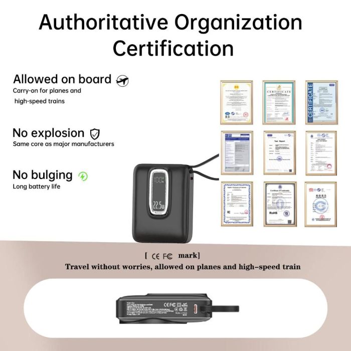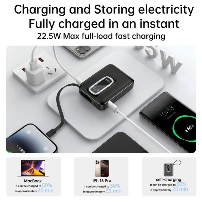 - Aspor 10000mAh Wireless Charging Power Bank 22.5W with Built-in Cable
