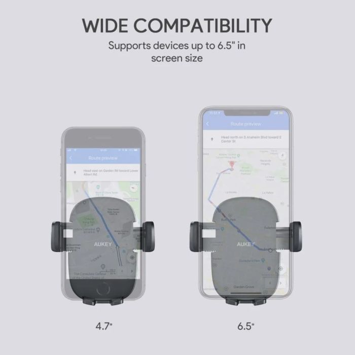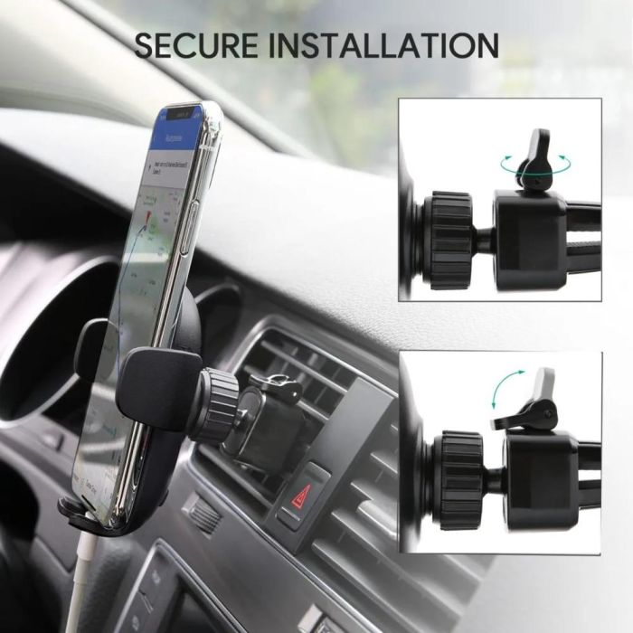 Give your phone optimal protection and stability while driving with the Aukey Car Phone Mount. Its smart and innovative design ensures a secure hold on the air vent, with 360-degree rotation for a comfortable and secure viewing angle. This mount fits most phones up to 6.5 inches, with an adjustable clip that fits various air vents without compromising airflow. Made from high-quality materials, it protects your device from scratches and provides excellent stability even on bumpy roads. Easy installation and removal make your experience smooth and comfortable, making it the perfect companion for every journey.