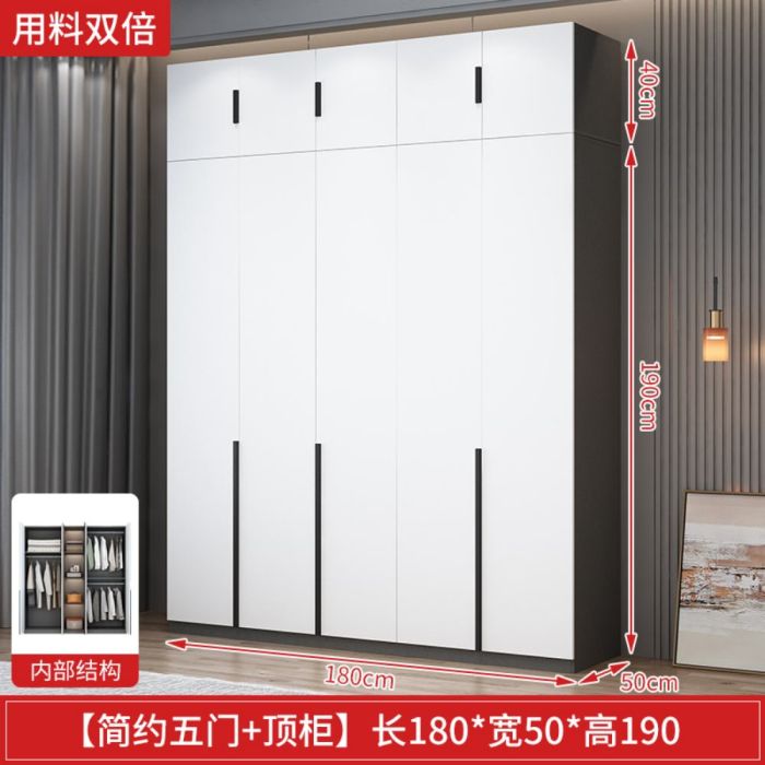 - AURORA Particle Wood Wardrobe 5 Doors with Integrated Top Cabinet 180 × 50 × 190 cm