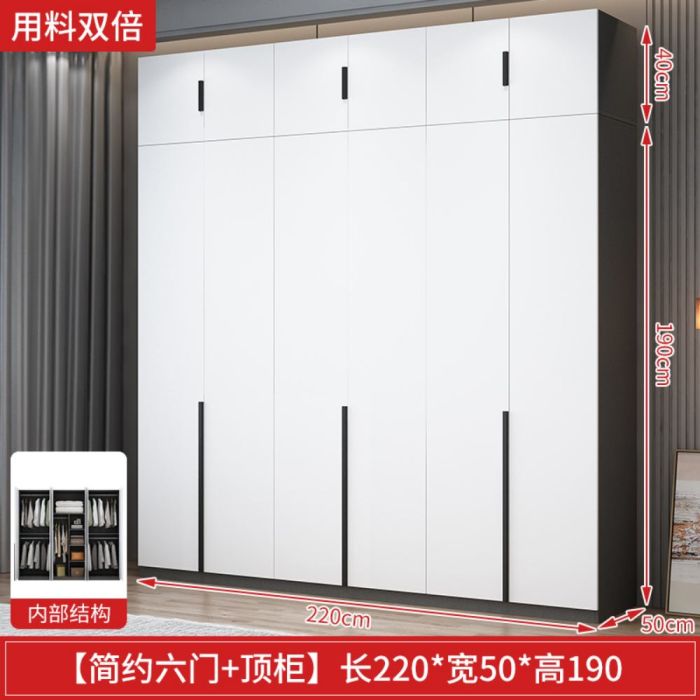 - AURORA Particle Wood Wardrobe 6 Doors with Top Cabinet 220 × 50 × 190 cm