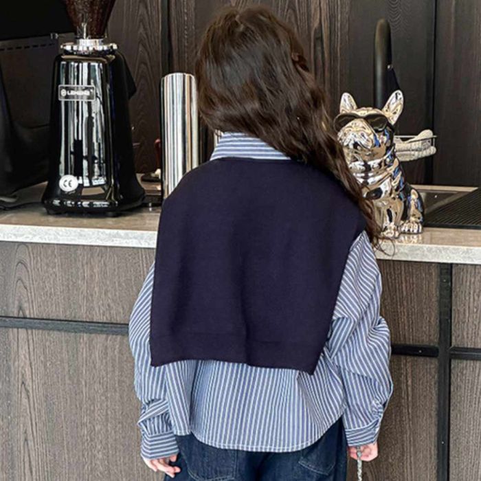 Add a touch of elegance to your little girl's look with this striped shawl blouse. It features a loose fit for freedom of movement and long sleeves that provide light warmth in mild weather. The stripes add a classic touch, while the loose fit offers both comfort and style. Perfect for school, outings, or casual occasions.Today’s Deal is Autumn Loose Stylish Striped Shawl Blouse For Girls