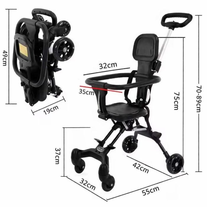 - Dimensions before folding: 55 × 32 × 70–89 cm