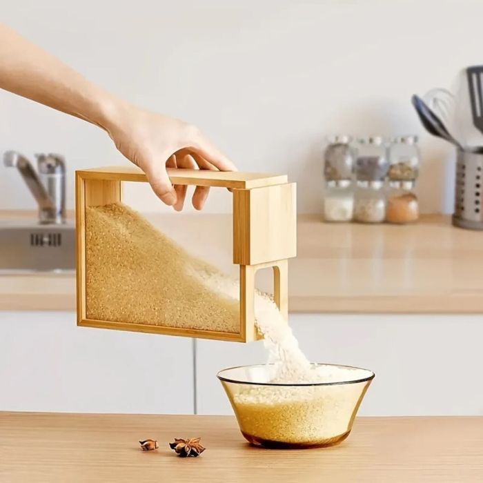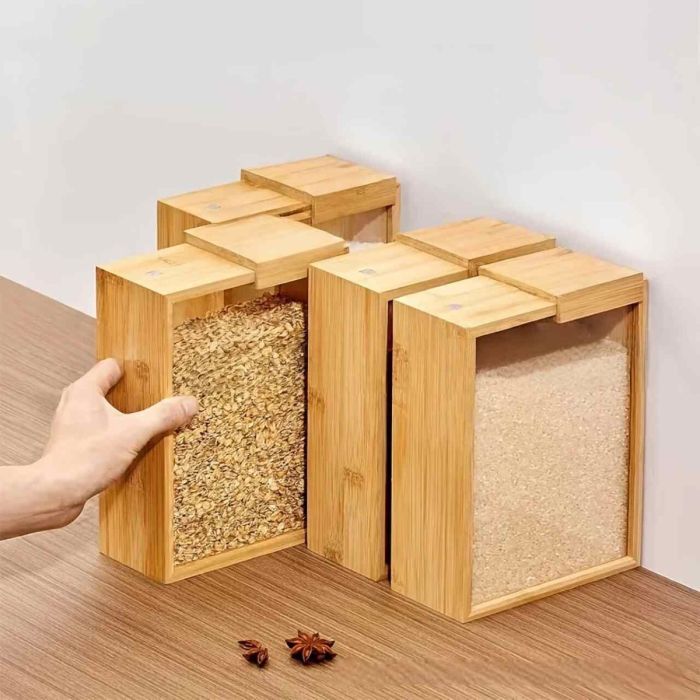 - Bamboo Wood Slide Cover Grain Storage Box 1 Pcs