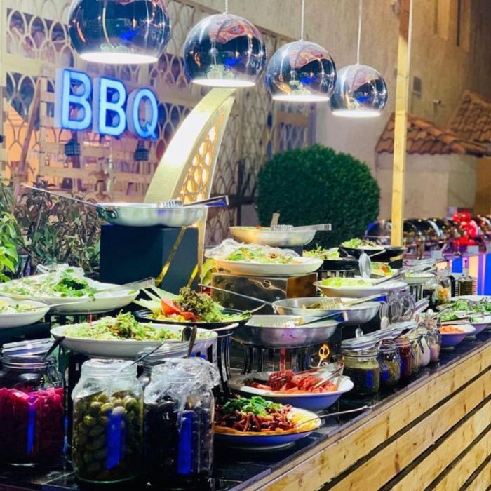 Indulge in a fantastic BBQ Night buffet every Friday by the pool Bay's Restaurant - Montrose Hotel (Movenpick Free Zone Previously) where they offer a large selection of salads and mezzes, together with choices of grilled meat , chicken . Also available live cooking station, with a large variety of selections, and not to forget delicious desserts