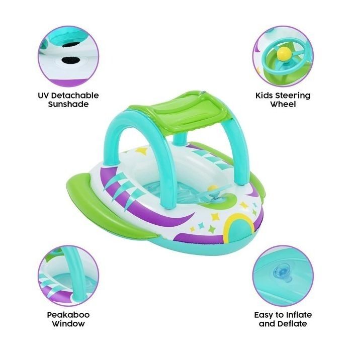 - Bestway Space Splash Inflatable Baby Boat with Sunshade 107 x 112cm