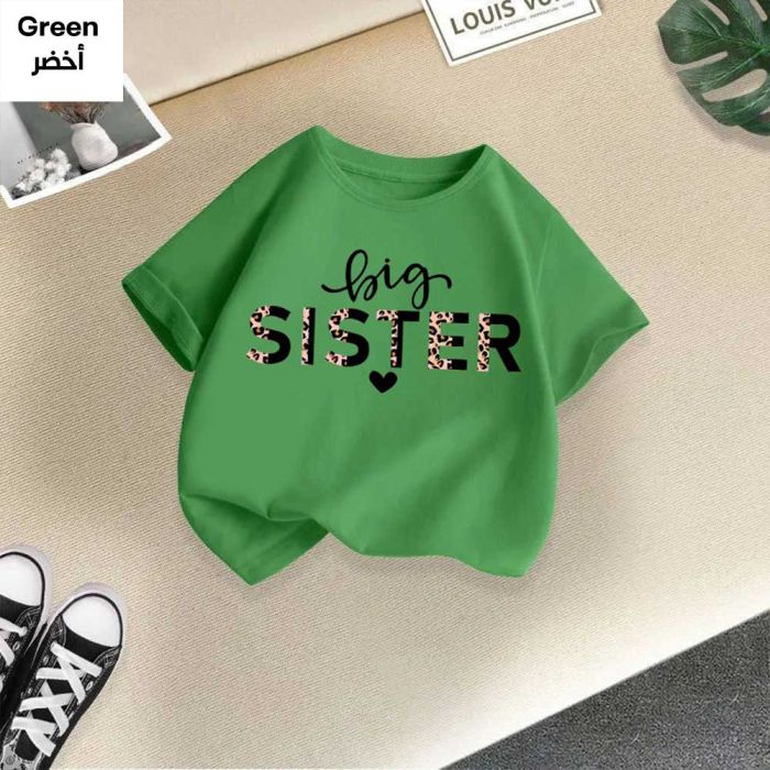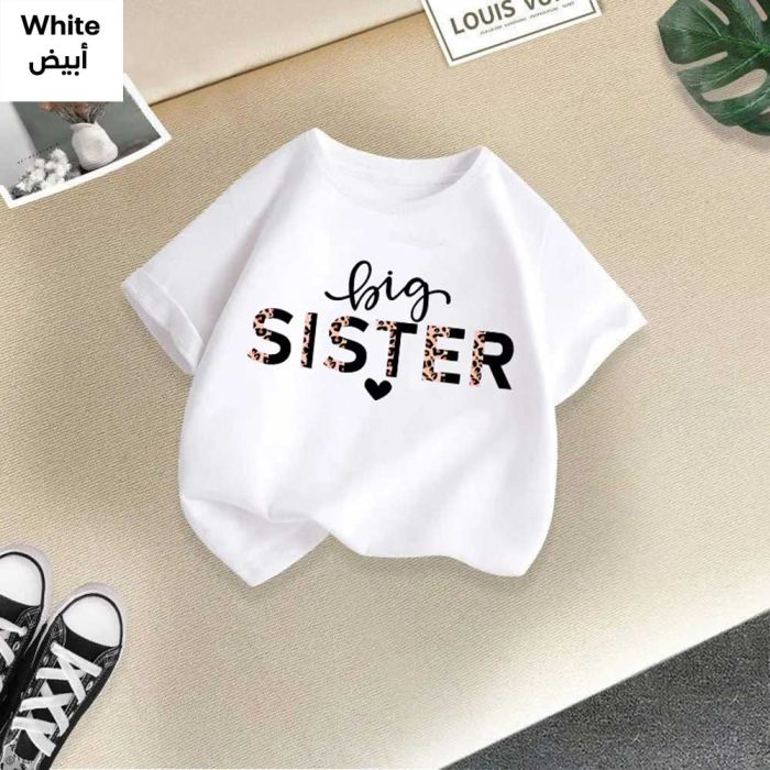 This girls' short-sleeve T-shirt is designed to add joy and comfort to your little girl's look. It features a fun butterfly print and a stylish crew neck. It's made from soft, skin-friendly cotton that's easy to wash. It can be paired with jeans, skirts, or leggings, making it the perfect choice for school, outings, or the weekend.Today’s Deal is Big Sister Short Sleeve T-Shirt For Girls