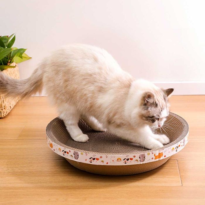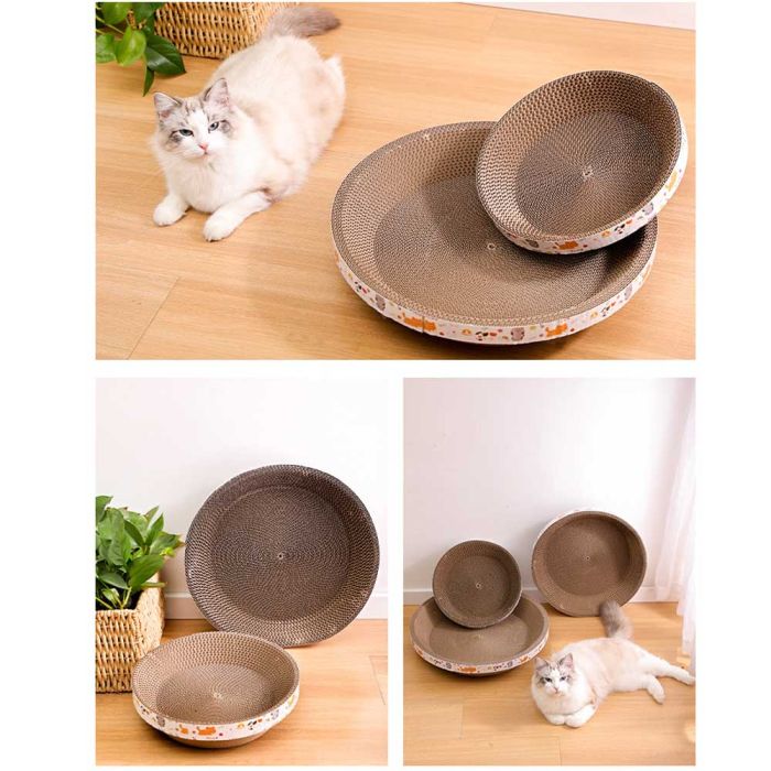 This Bowl Shape Cat Scratch Board is crafted from durable corrugated paper, offering a comfortable space for your cat to stretch and relax. It provides excellent scratch resistance with a soft