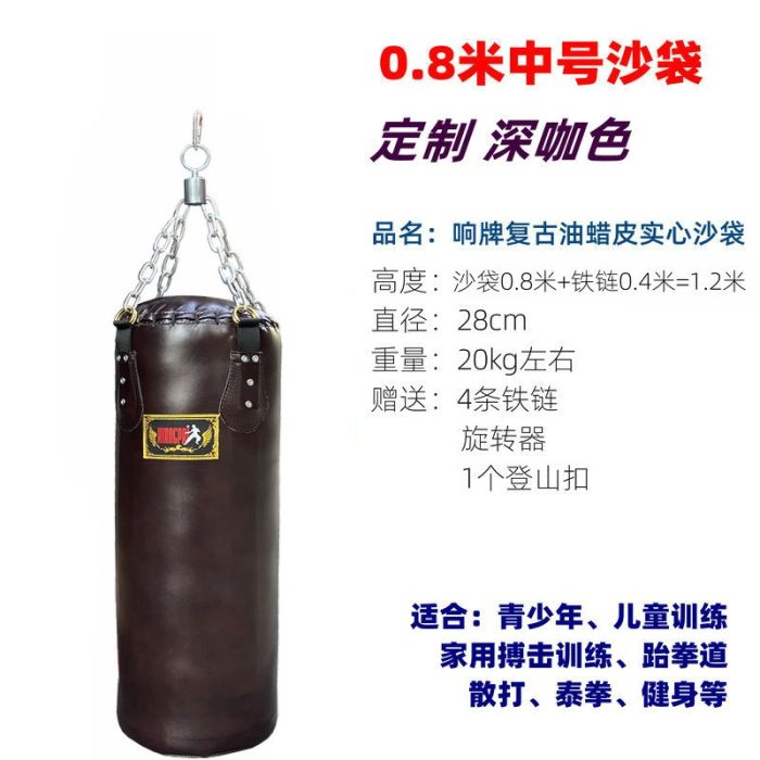 A strong and durable punching bag made from oil-waxed leather to withstand the toughest training sessions, ideal for boxing, kickboxing, and taekwondo. Designed to provide a professional training experience whether at home or in the gym. Made from leather that combines strength and flexibility, making it tear- and wear-resistant.Today's Deal is Boxing Sandbag for Adults and Children 80cm 20kg