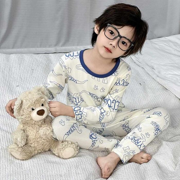 Elegant cotton pajama set for kids made of soft and safe natural fabric, providing comfort and warmth all day long, perfect for sleep and indoor play, and retains its quality after washing, making it the ideal choice for autumn and winter.