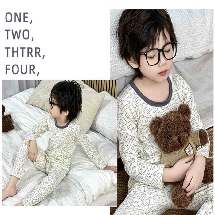 Elegant cotton pajama set for kids made of soft and safe natural fabric, providing comfort and warmth all day long, perfect for sleep and indoor play, and retains its quality after washing, making it the ideal choice for autumn and winter.