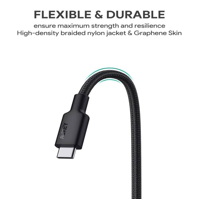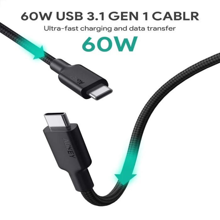 Get a premium charging and syncing experience with the Aukey USB-C to USB-C Cable (2m). This cable combines 60W fast charging, data transfer speeds of up to 5Gbps, and 4K video support—all in one durable and perfect cable.