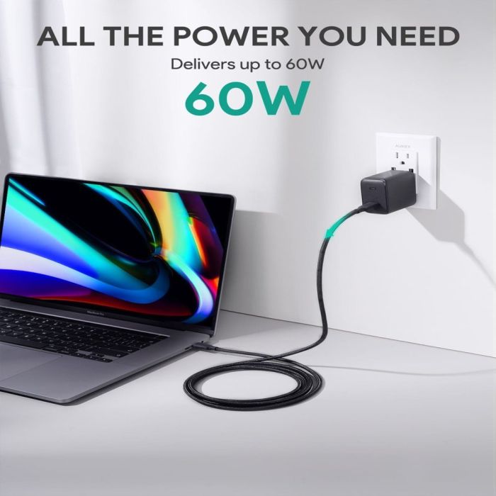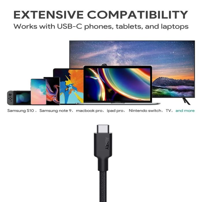 - Braided Nylon Cable USB-C to USB-C 60W 2m by Aukey