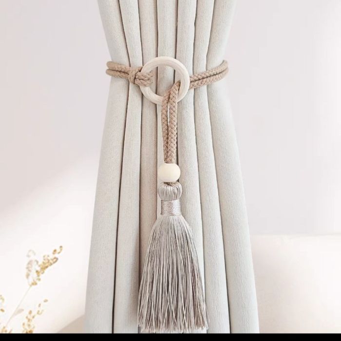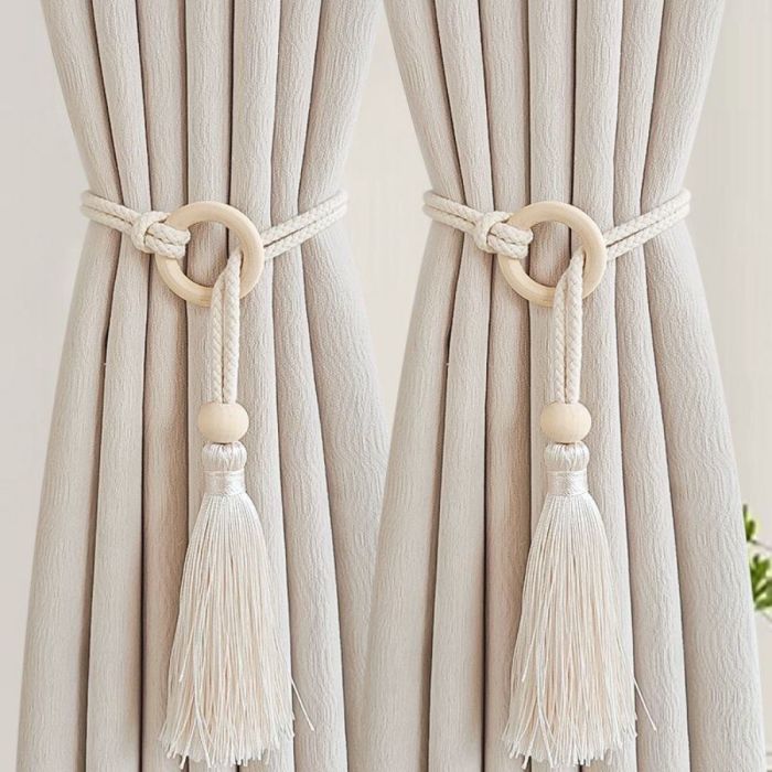 - Braided Wooden Ring Curtain Tiebacks - 4pcs