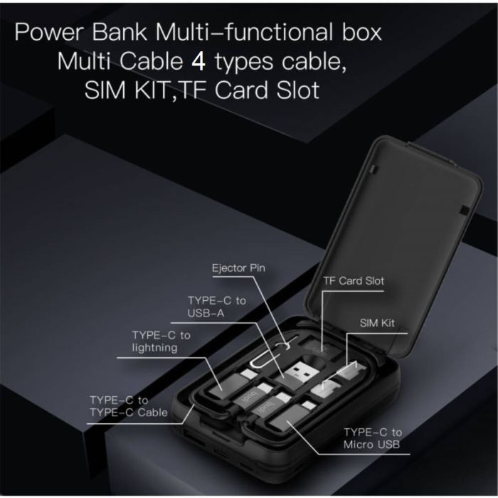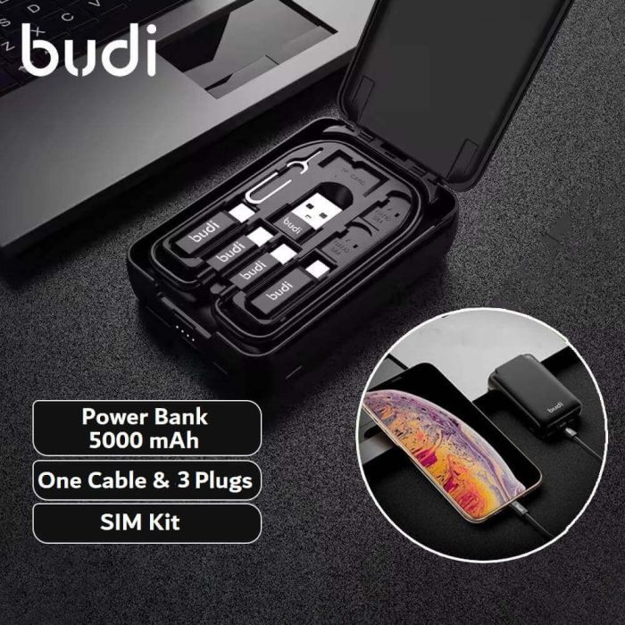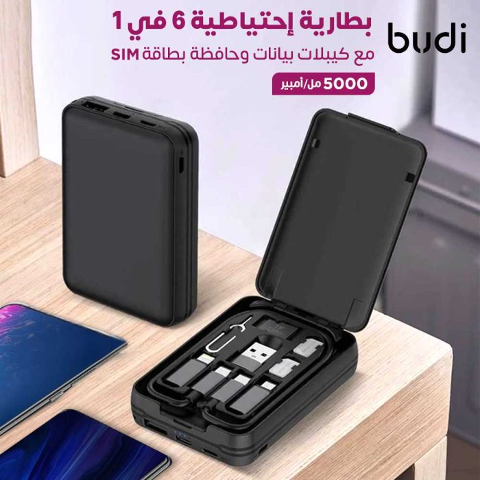 6 in 1 5000mAh Power Bank with Data Cables and Sim Card Holder by Budi