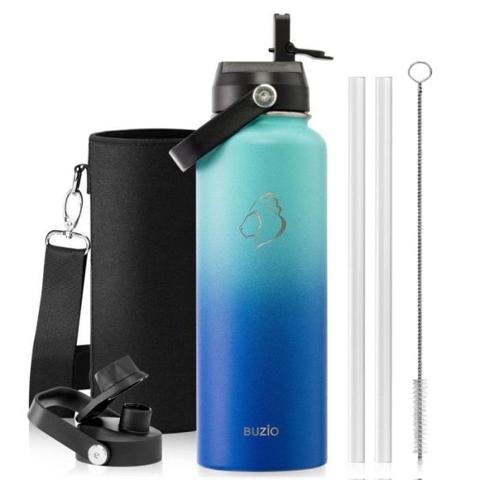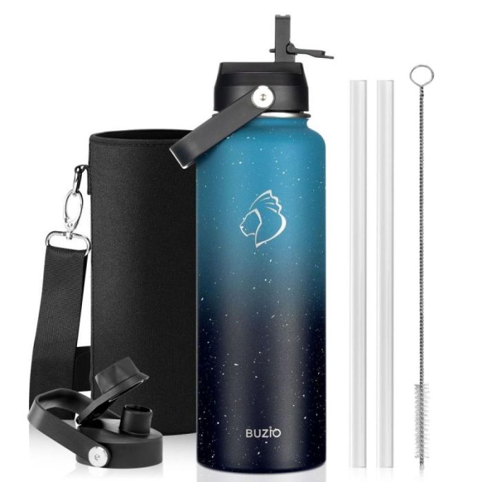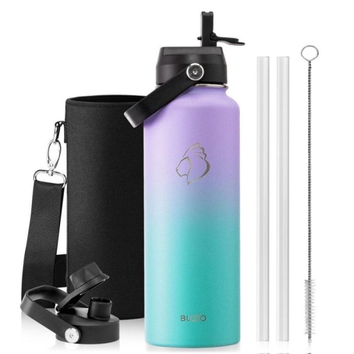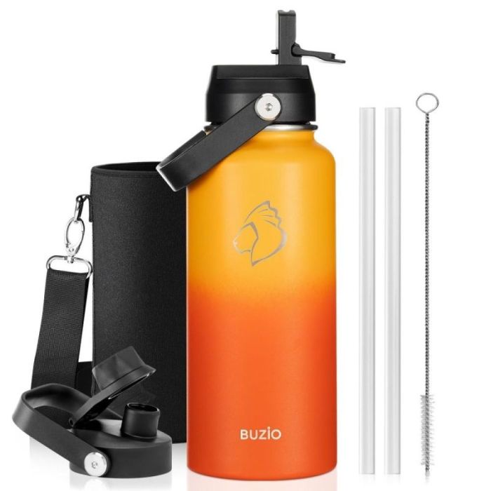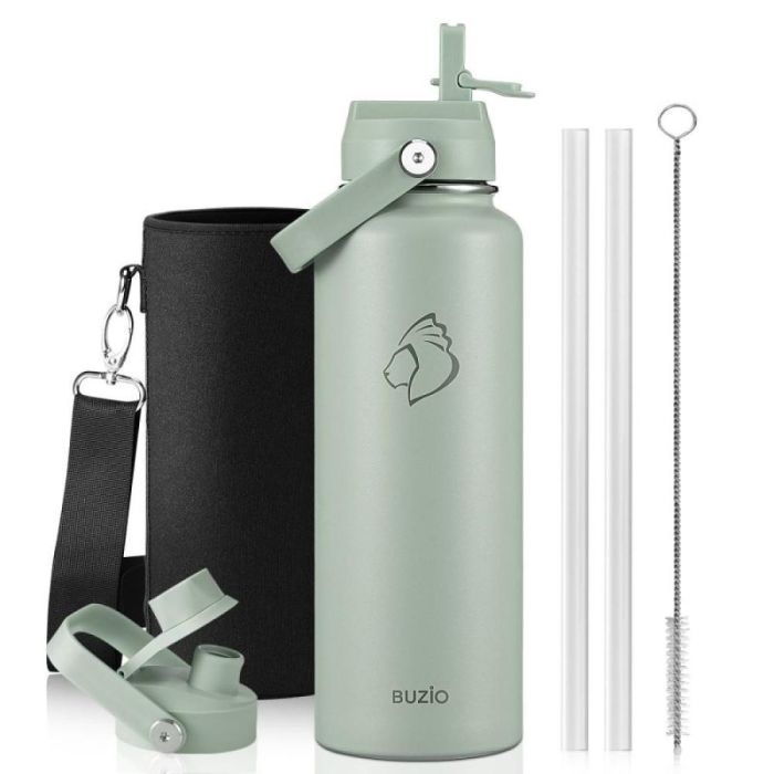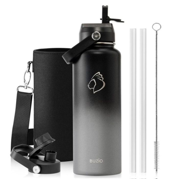 Today's Deal is Buzio Duet Series 1.2L Water Bottle with 2 Lids and Sleeve