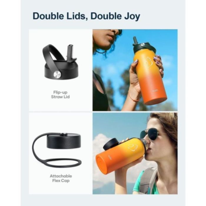 The Duet flask features a fourth-generation, advanced design with triple-wall copper insulation to keep beverages at the desired temperature for extended periods. It keeps drinks cold for up to 48 hours and hot for up to 24 hours, making it ideal for everyday use or during workouts. It comes with two different lids for greater flexibility, plus a protective cap for easy carrying, and a leak-proof design to ensure a comfortable and safe user experience.