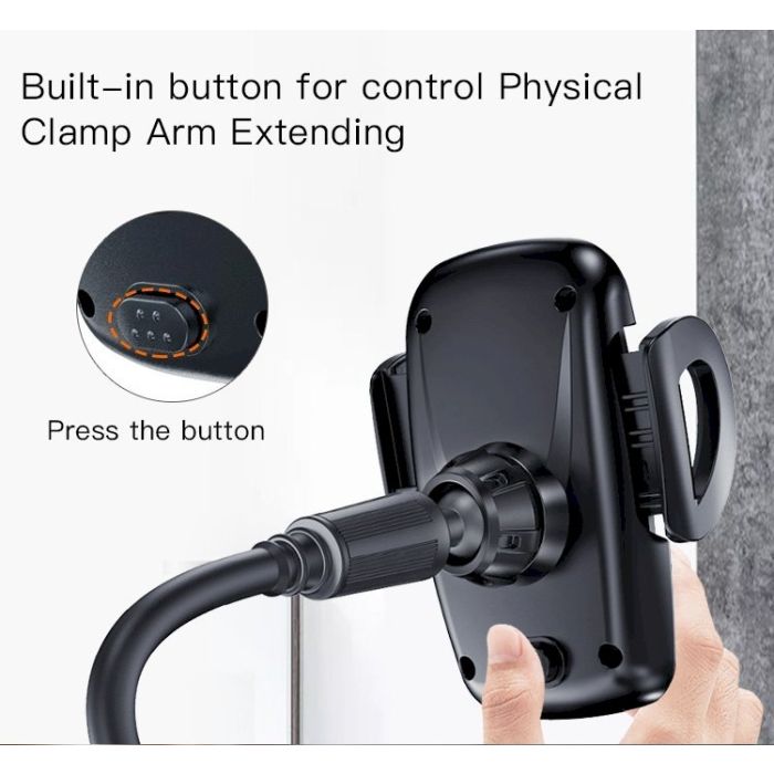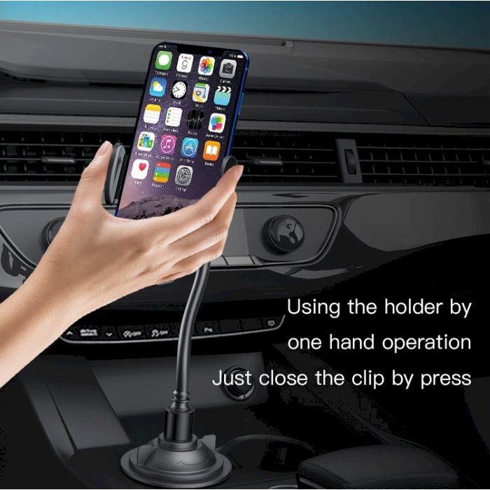 It has an adjustable neck for more convenience. One button release feature phone holder, deep enough to hold your cell phones even with a case.
