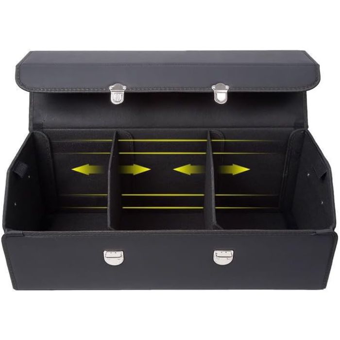 - This car boot organiser box is made of high-quality and durable material with fine workmanship. Has a better load capacity and a longer service life, it is also not easy to deform and tear. It can store items for a long time and is safer to use