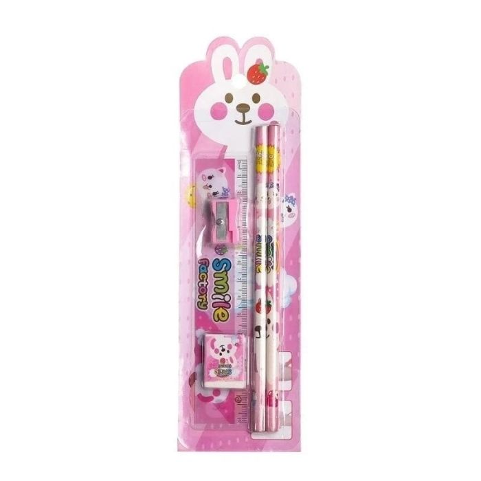 - Contains: 2 pencils, 1 eraser, 1 ruler, and 1 sharpener