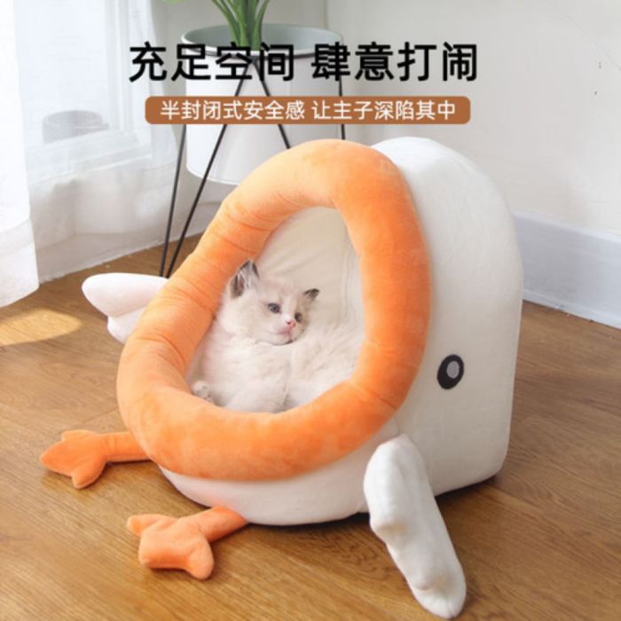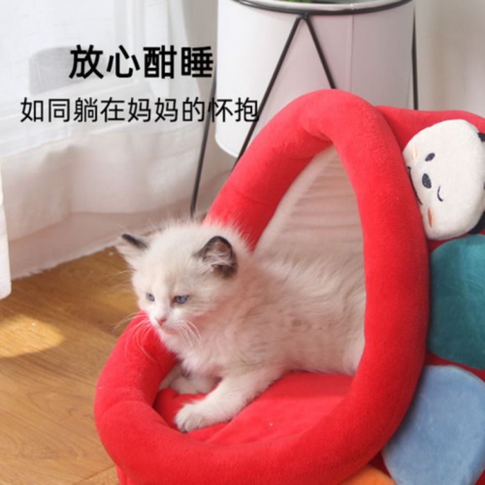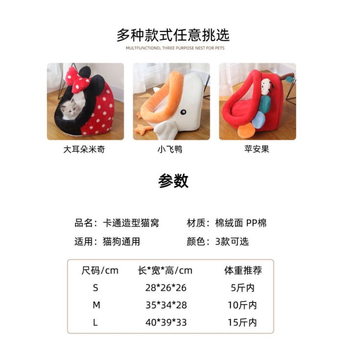 This Cartoon Semi-Enclosed Padded Cat House provides a warm and cozy space for your pet, semi-enclosed design enhances security, soft inner filling for extra comfort, suitable for indoor use all year round