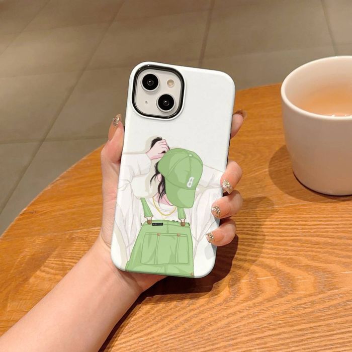 Cartoon Two-Tone Protective Cover Girl Pattern for iPhone