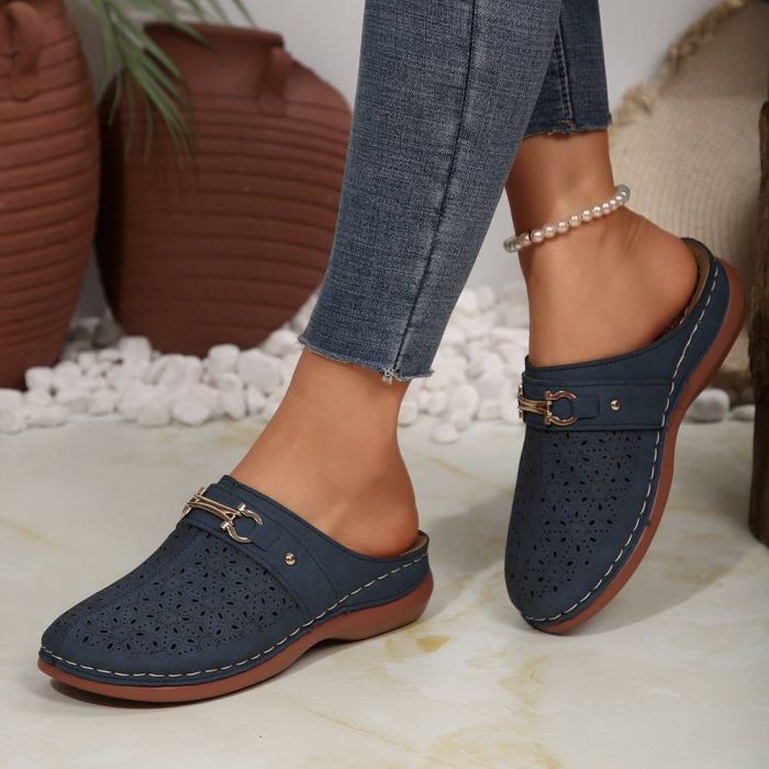 This Women's Casual, Chunky-soled Closed-toe Slippers Is Crafted from Durable Materials and Features a Closed-toe Design and a Thick Sole for Extra Protection and Comfort. Featuring a Half-shoe Silhouette, This Sandal Combines the Elegance of a Loafer with the Comfort of a Sandal. It's the Perfect Choice for Everyday Wear in Spring and Summer and Offers Excellent Stability for Plus-size Footwear.