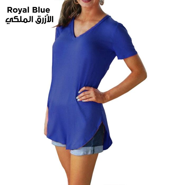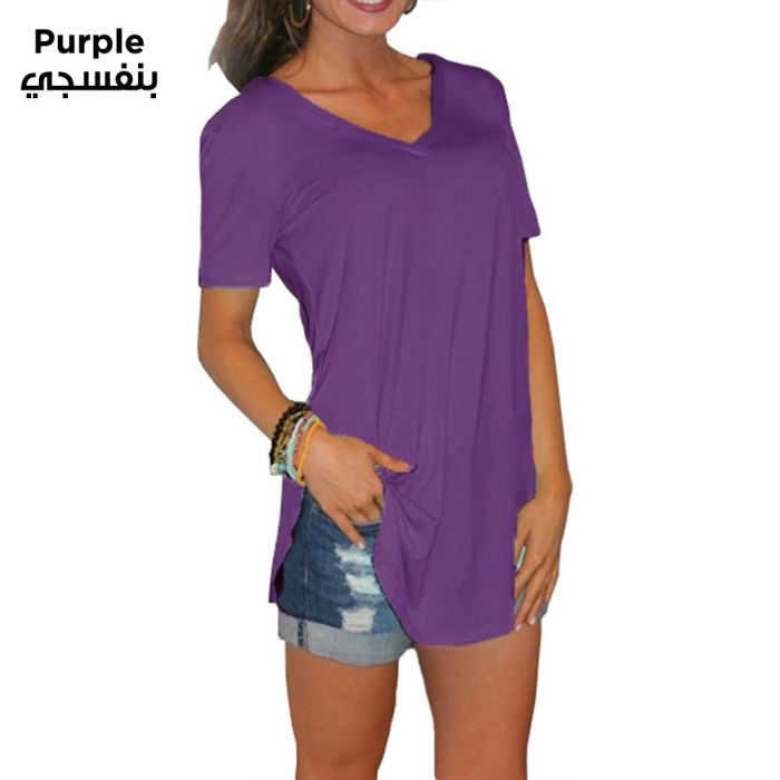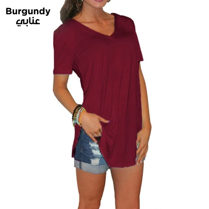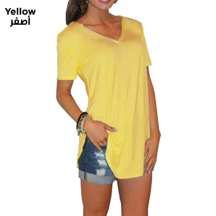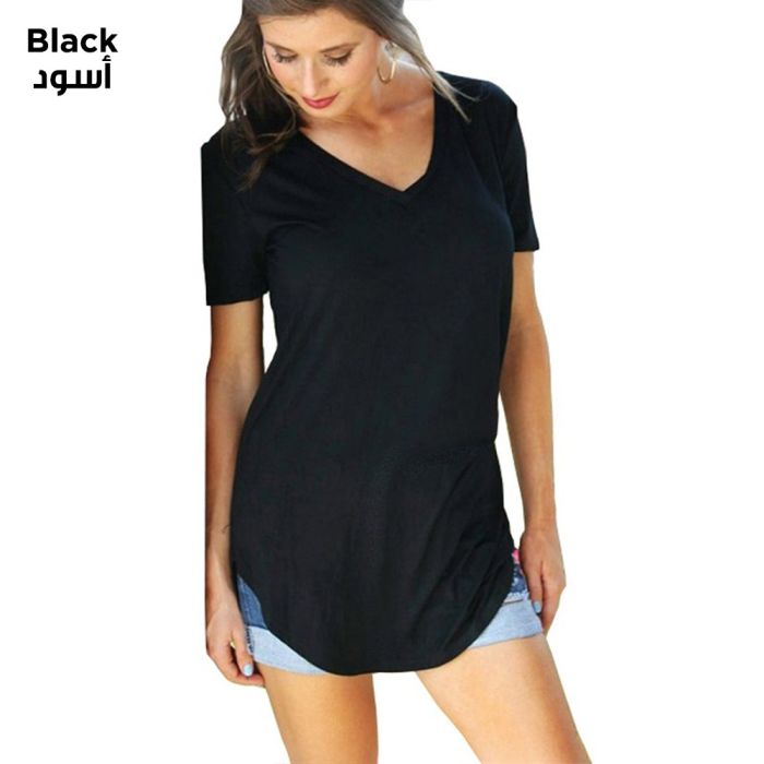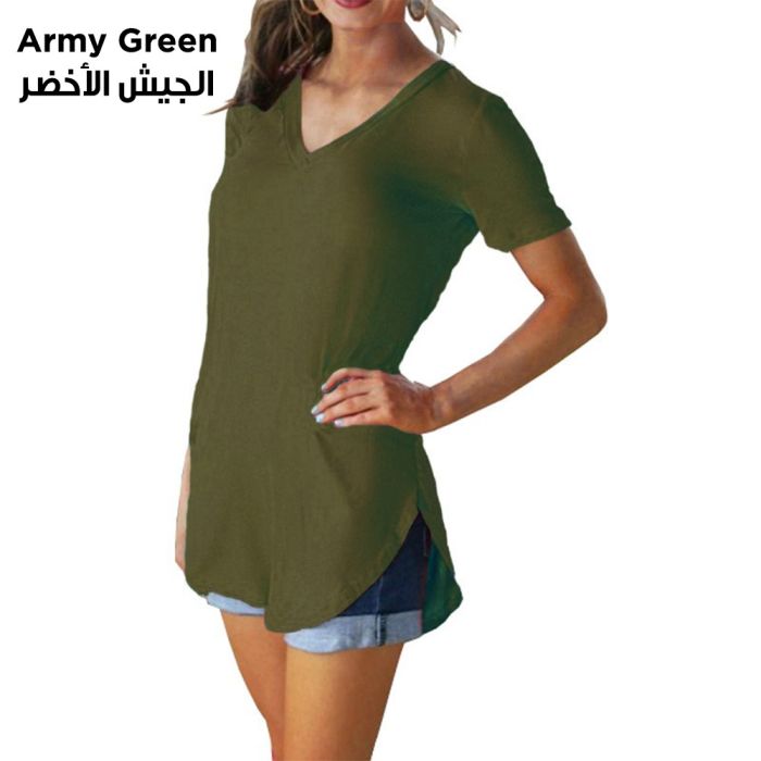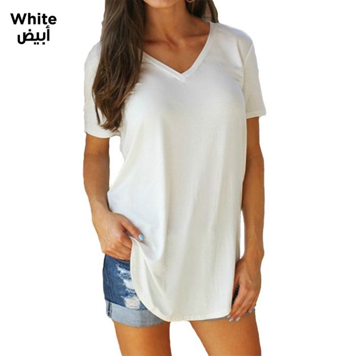 - Casual Loose Short Sleeve V-Neck T-Shirt For Women